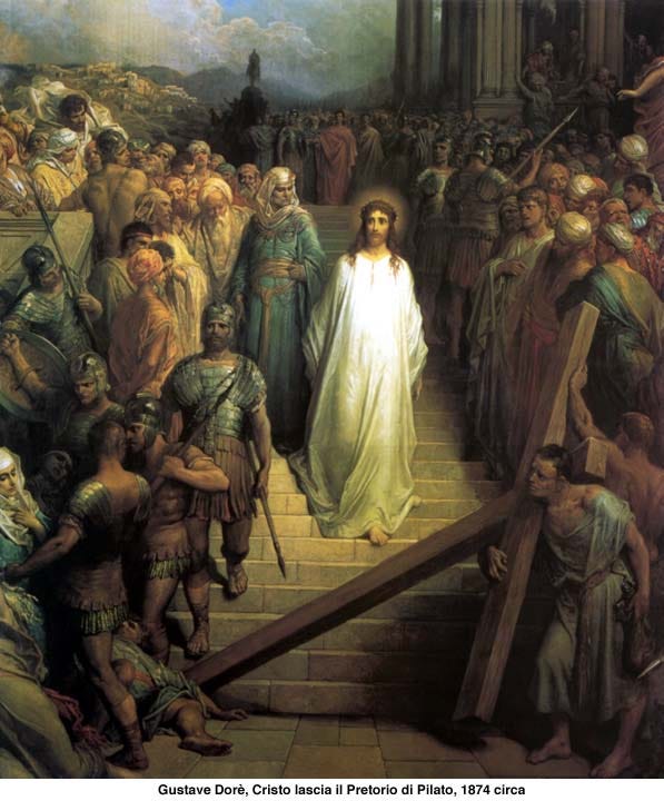 John’s Passion begins in the garden of Gethsemane, where the soldiers and officers come to arrest Jesus with lanterns and torches and weapons. The detail of the lanterns and torches is, for John, a theological statement: the men who come to arrest the Light of the World must bring their own artificial lights because they cannot bear the light that He is. When Jesus steps forward and identifies Himself with the words “I am he,” the soldiers fall to the ground: the power of the divine name, the name that was revealed to Moses at the burning bush, is too great for them to withstand, and they fall before the one they have come to arrest.
